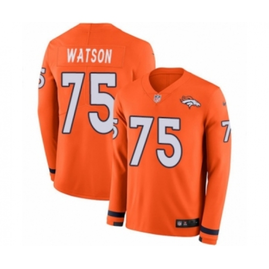 >Youth Nike Denver Broncos #75 Menelik Watson Limited Orange Therma Long Sleeve NFL Jersey