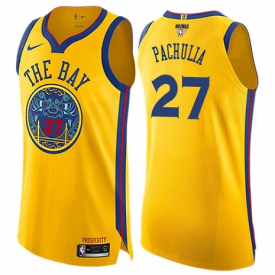 Men's Nike Golden State Warriors #27 Zaza Pachulia Authentic Gold 2018 NBA Finals Bound NBA Jersey - City Edition