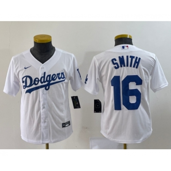 Youth Los Angeles Dodgers #16 Will Smith Authentic White Home Cool Base Baseball Player Jersey