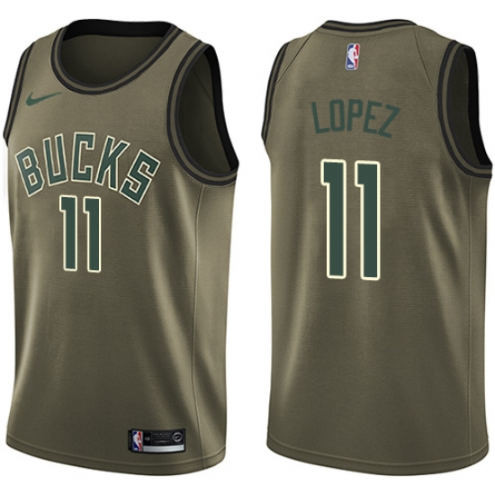 Youth Nike Milwaukee Bucks #11 Brook Lopez Swingman Green Salute to Service NBA Jersey