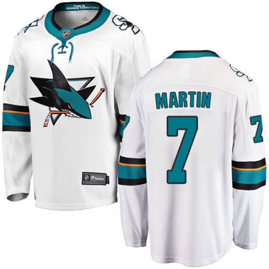 Home>NHL>San Jose Sharks>Paul Martin>Youth San Jose Sharks #7 Paul Martin Fanatics Branded White Away Breakaway NHL Jersey