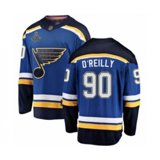 Men's St. Louis Blues #90 Ryan O'Reilly Authentic Royal Blue Home 2019 Stanley Cup Champions Hockey Jersey