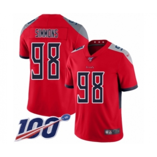 >Youth Tennessee Titans #98 Jeffery Simmons Limited Red Inverted Legend 100th Season Football Jersey
