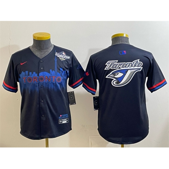 Youth Toronto Blue Jays Team Big Logo Navy 2025 World Series City Connect Limited Stitched Baseball Jersey